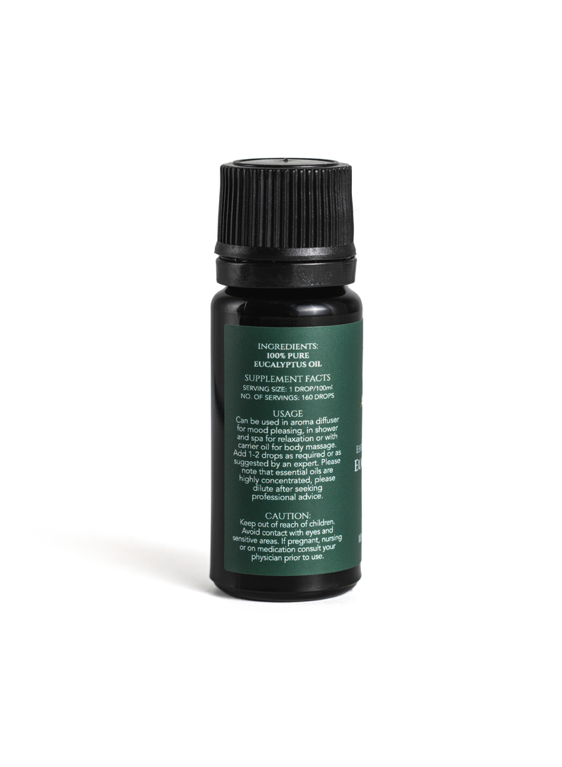 Ulei esențial de eucalipt 100% pur, produs prin distilarea cu abur a frunzelor de eucalipt din India.